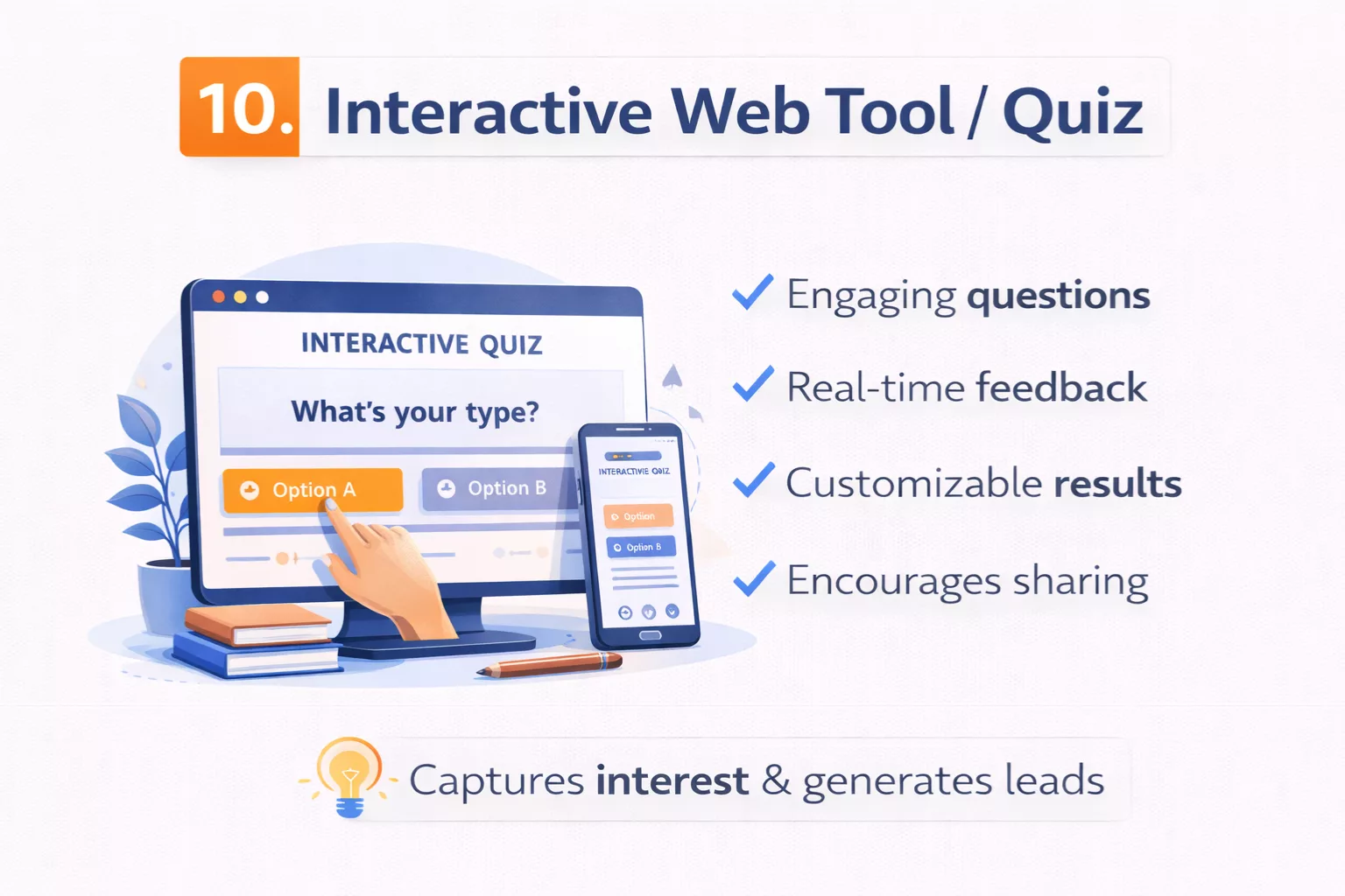 - Examples include blog posts, landing pages, emails, product pages, and interactive tools.