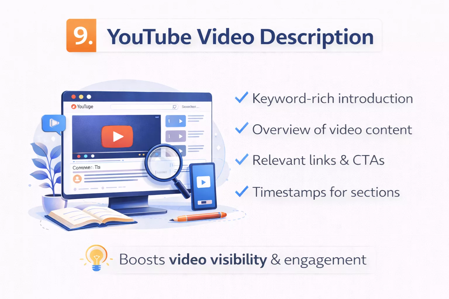 A strong YouTube video description is digital writing that supports visibility, structure, and action. It may sit below the video, but it plays a major role in how the content performs.
